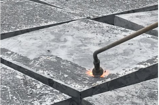 Đá đen khò lửa được tạo ra bằng cách đốt bề mặt đá ở nhiệt độ cao mà không ảnh hưởng đến chất lượng đá. Với bề mặt khò và các đường vân đá ấn tượng, đá đen khò lửa được sử dụng phổ biến để lát sân vườn.