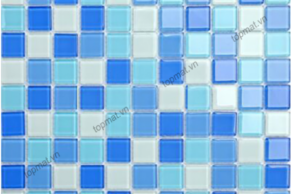 - Gạch Mosaic Thủy Tinh TM25-23 với tông màu xanh mang đến sự sang trọng, mang phong cách hiện đại, trẻ trung. Các viên chip đơn màu xanh ghép lại tạo thành một vỉ gạch khiến sản phẩm tinh tế, hài hòa hơn và nhìn không bị chán mắt.