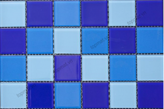 - Gạch Mosaic Thủy Tinh TM48-06 với tông màu xanh mang đến sự sang trọng, mang phong cách hiện đại, trẻ trung. Các viên chip đơn màu xanh ghép lại tạo thành một vỉ gạch khiến sản phẩm tinh tế, hài hòa hơn và nhìn không bị chán mắt.