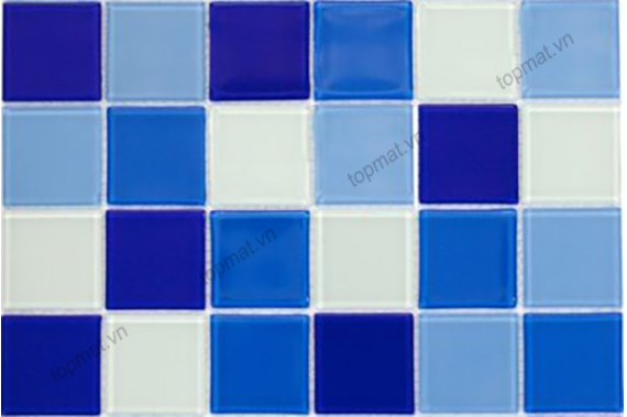 - Gạch Mosaic Thủy Tinh TM48-08 với tông màu xanh mang đến sự sang trọng, mang phong cách hiện đại, trẻ trung. Các viên chip đơn màu xanh ghép lại tạo thành một vỉ gạch khiến sản phẩm tinh tế, hài hòa hơn và nhìn không bị chán mắt.