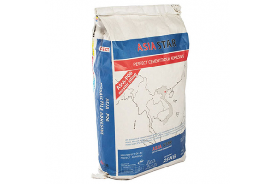 Keo ốp lát gạch đá Mosaic ASIA- P06 là là sự kết hợp giữ vật liệu xi măng với phụ gia Polymer biến tính, được dùng để ứng dụng trong thi công ốp lát các loại gạch, đá tự nhiên (ceramic, mosaic, granit vv…,), đá nhân tạo. Thành phần chính của nó bao gồm xi măng, cốt liệu thô, cốt liệu mịn chọn lọc, các loại phụ gia polymer biến tính và các loại phụ gia khác, được phối trộn với nhau theo tỷ lệ nhất định.
