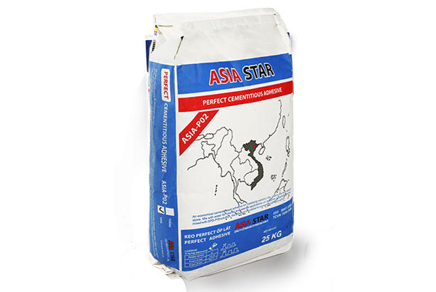 Keo ốp lát Perfect ASIA – P02  là vật liệu  xi măng kết hợp phụ gia Polymer biến tính, được ứng dụng trong thi công ốp lát các loại gạch, đá tự nhiên, đá nhân tạo..Thành phần chính gồm xi măng, cốt liệu thô, cốt liệu mịn chọn lọc, các loại phụ gia polymer biến tính và các loại phụ gia khác, được phối trộn với nhau theo tỷ lệ nhất đinh, đóng bao kín, dể vận chuyển và sử dụng với nhiều ưu điểm như độ bám dính cao, không bong rộp, chống thấm, chống trượt, thời gian thi công kéo dài…