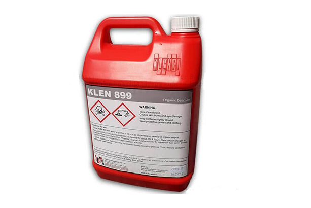 Klen 899 là chất tẩy cặn hiệu quả cao, không gây ăn mòn bề mặt thép không gỉ và an toàn cho các kim loại như: thép nhẹ, hợp kim đồng, nhôm và kẽm trong các công tác bảo trì vệ sinh làm sạch. Hóa chất khử cặn, mảng bám hữu cơ trong các hệ thống nước dàn ngưng và tháp giải nhiệt bao gồm thép không gỉ hoặc thép mạ kẽm.