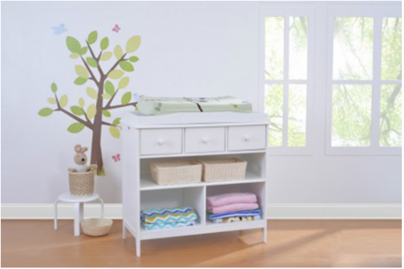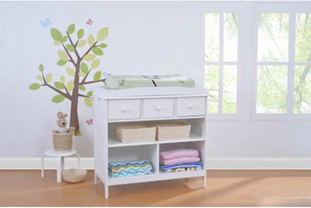 - Khay thay tã được đặt phía trên tủ, có thể tách ra và sử dụng như một tủ đựng đồ riêng biệt khi bé lớn.
